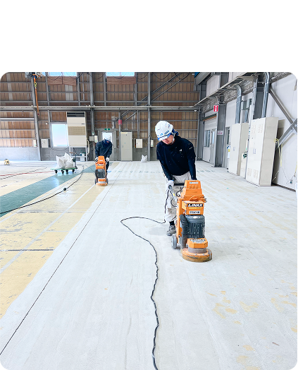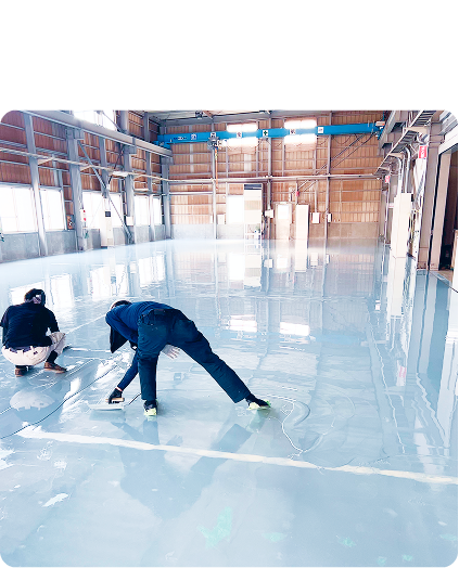 新築工事はもちろん、既存の床を撤去して塗り直す改修工事にも力を入れています。